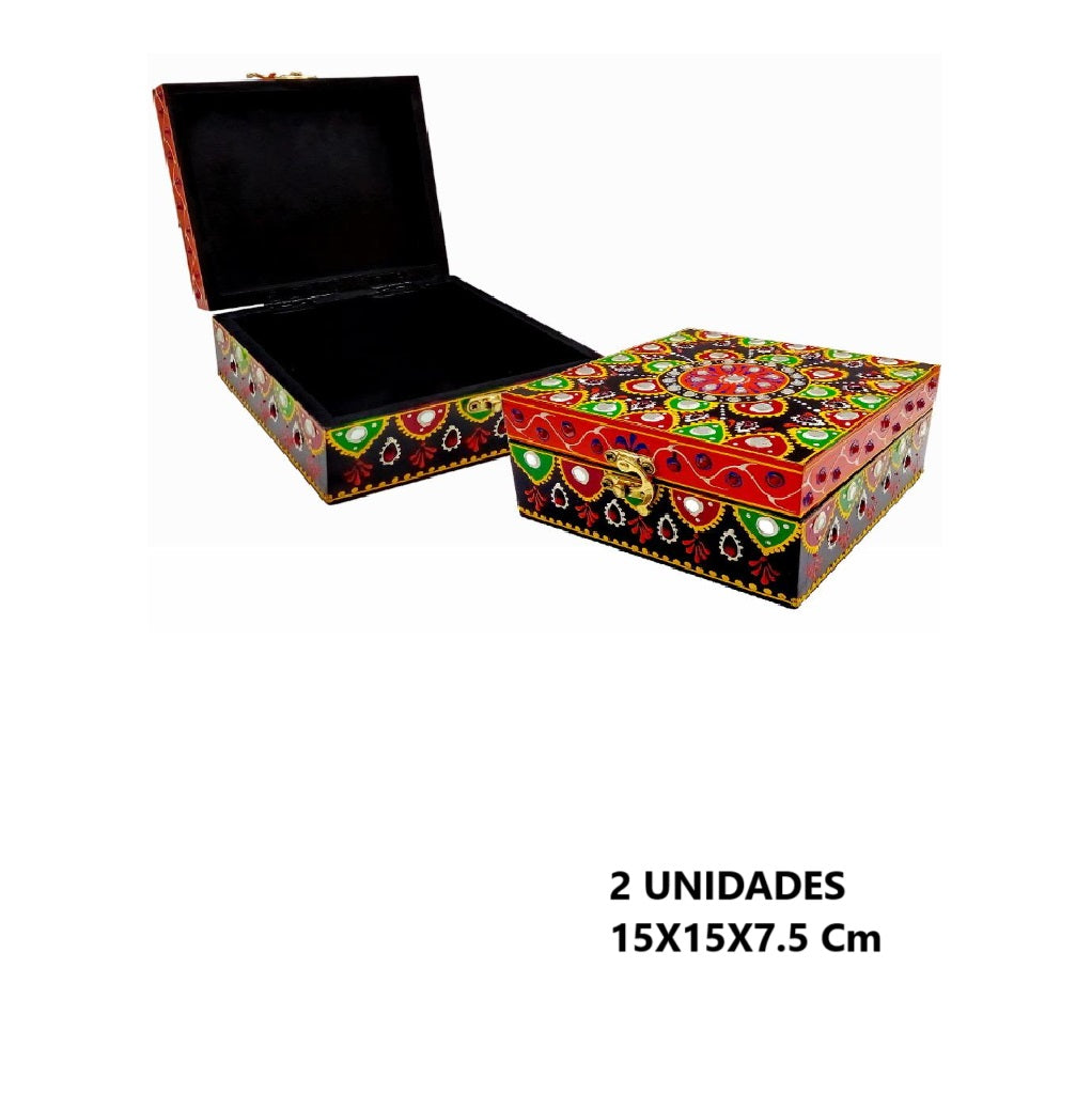 Caja Madera Mandala 15X15X7.5 Cm x 2 Und