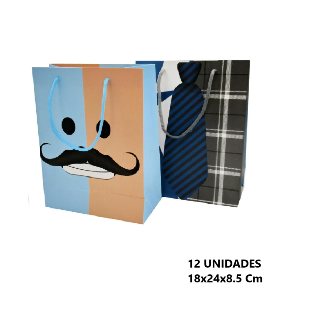 Bolsa De Regalo Chico Mostacho Corbata 18x24x8,5 Cm x 12 Und