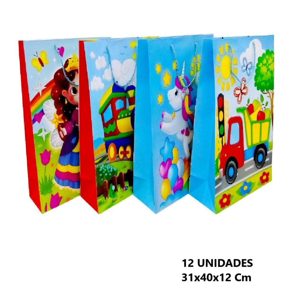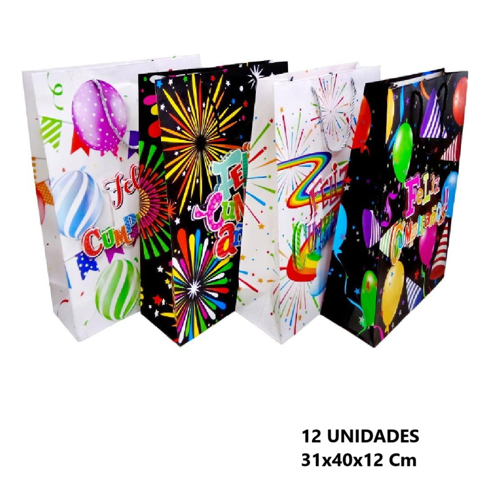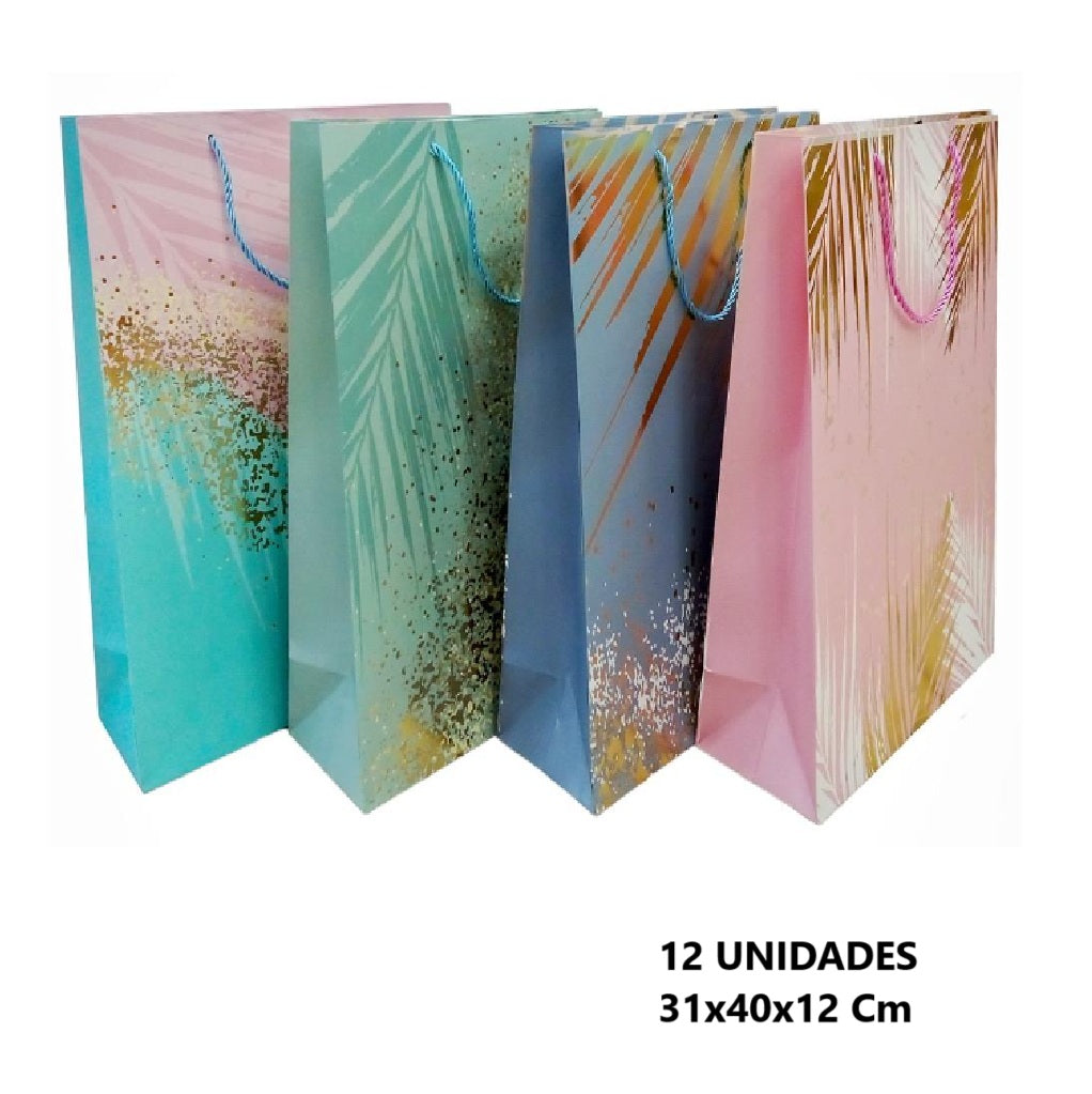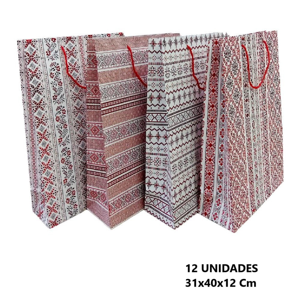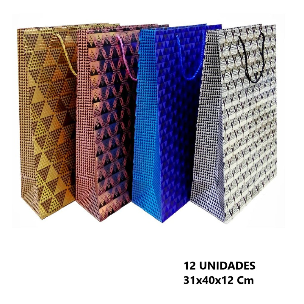 Bolsa De Regalo Grande Impresa Brillante 31x40x12 Cm x 12 Und