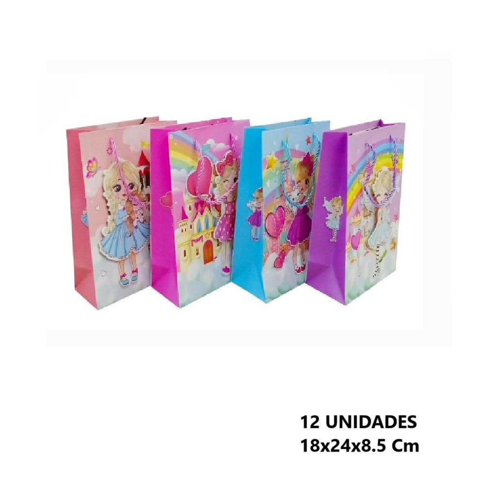 Bolsa De Regalo Chico Princesas 18x24x8,5 Cm x 12 Und