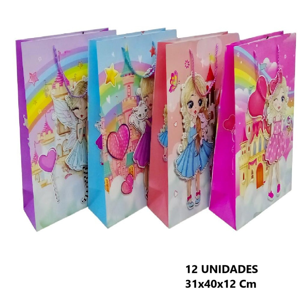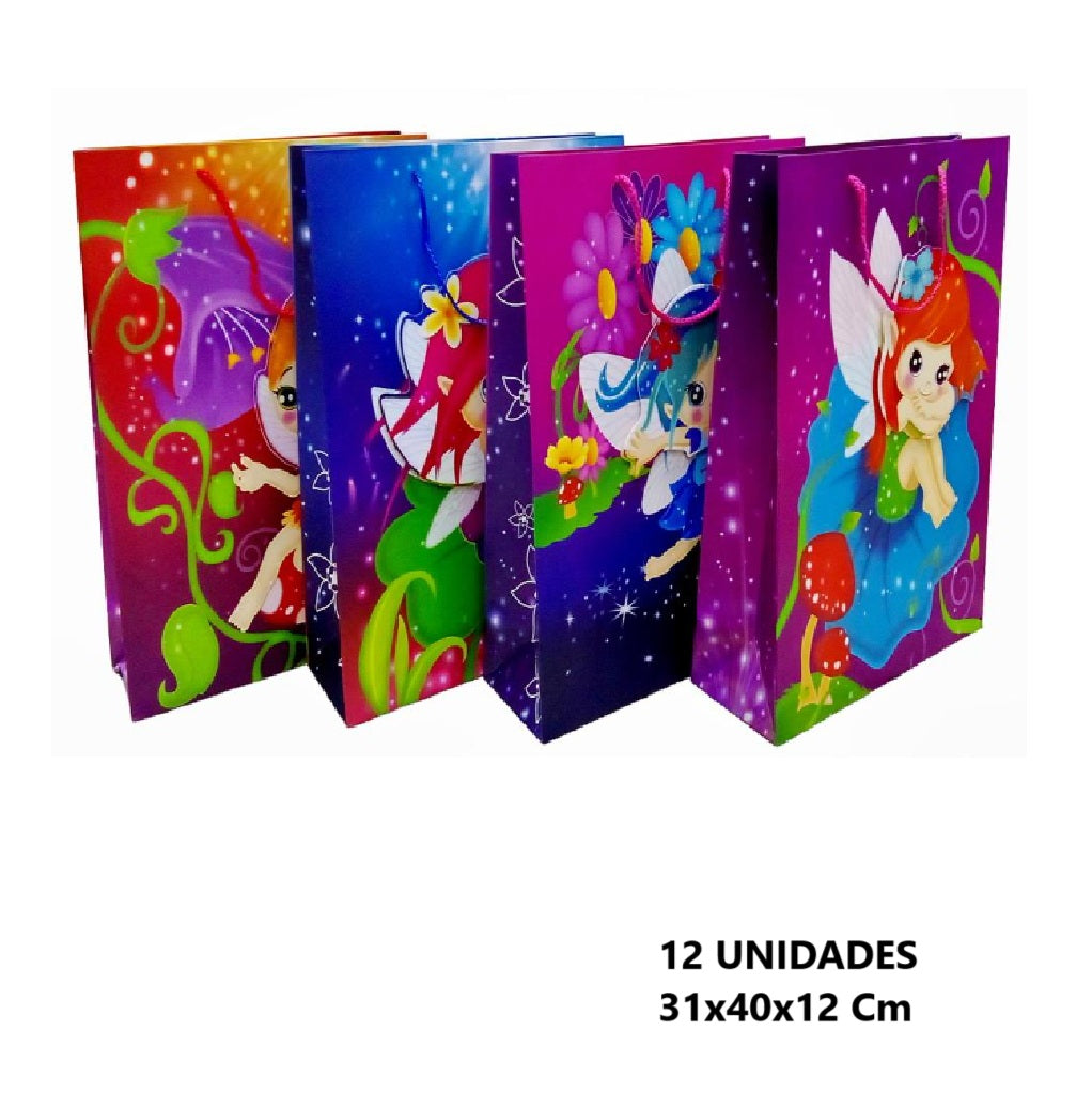 Bolsa De Regalo Grande Para Niños Hadas 31x40x12 Cm x 12 Und