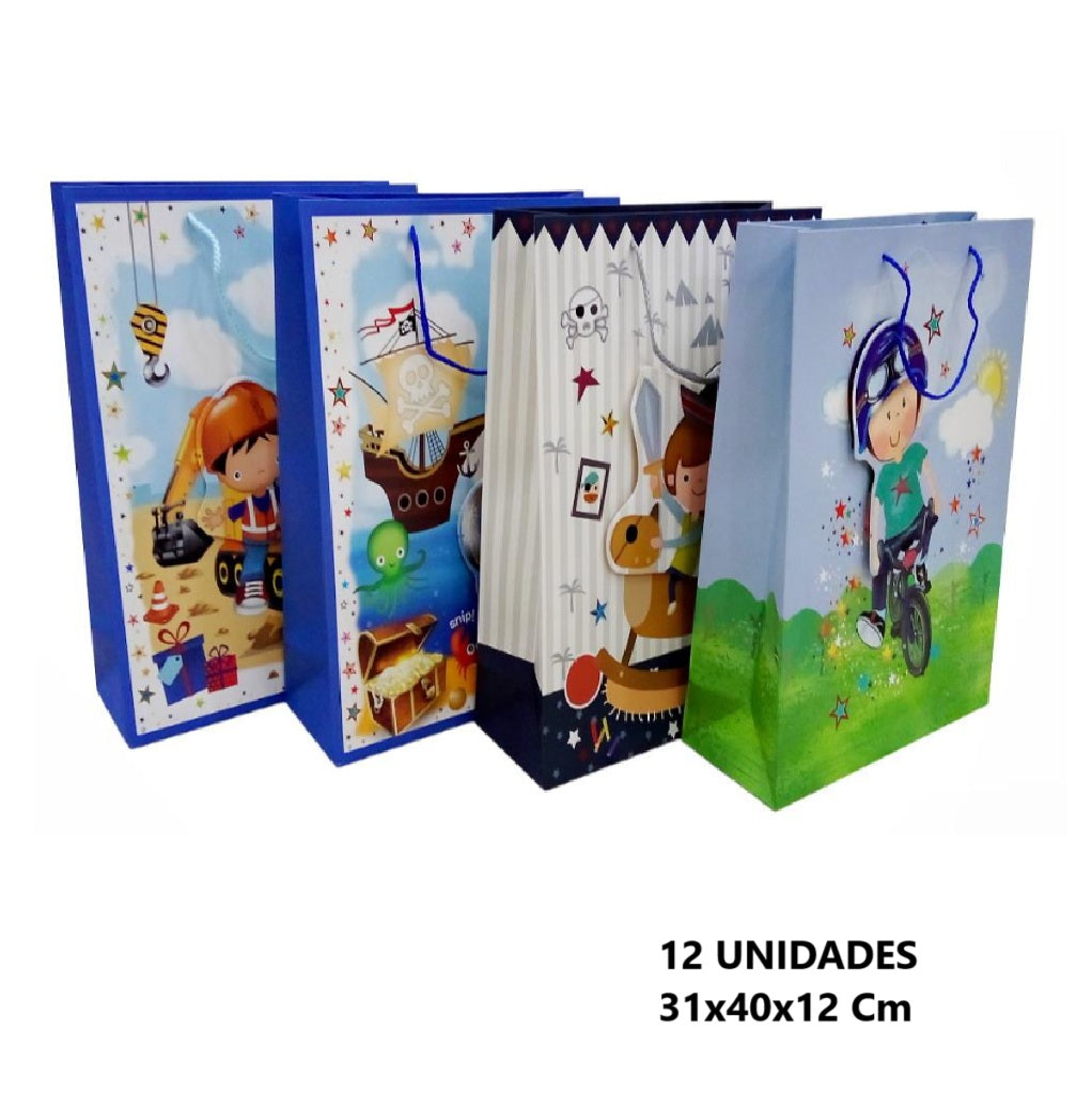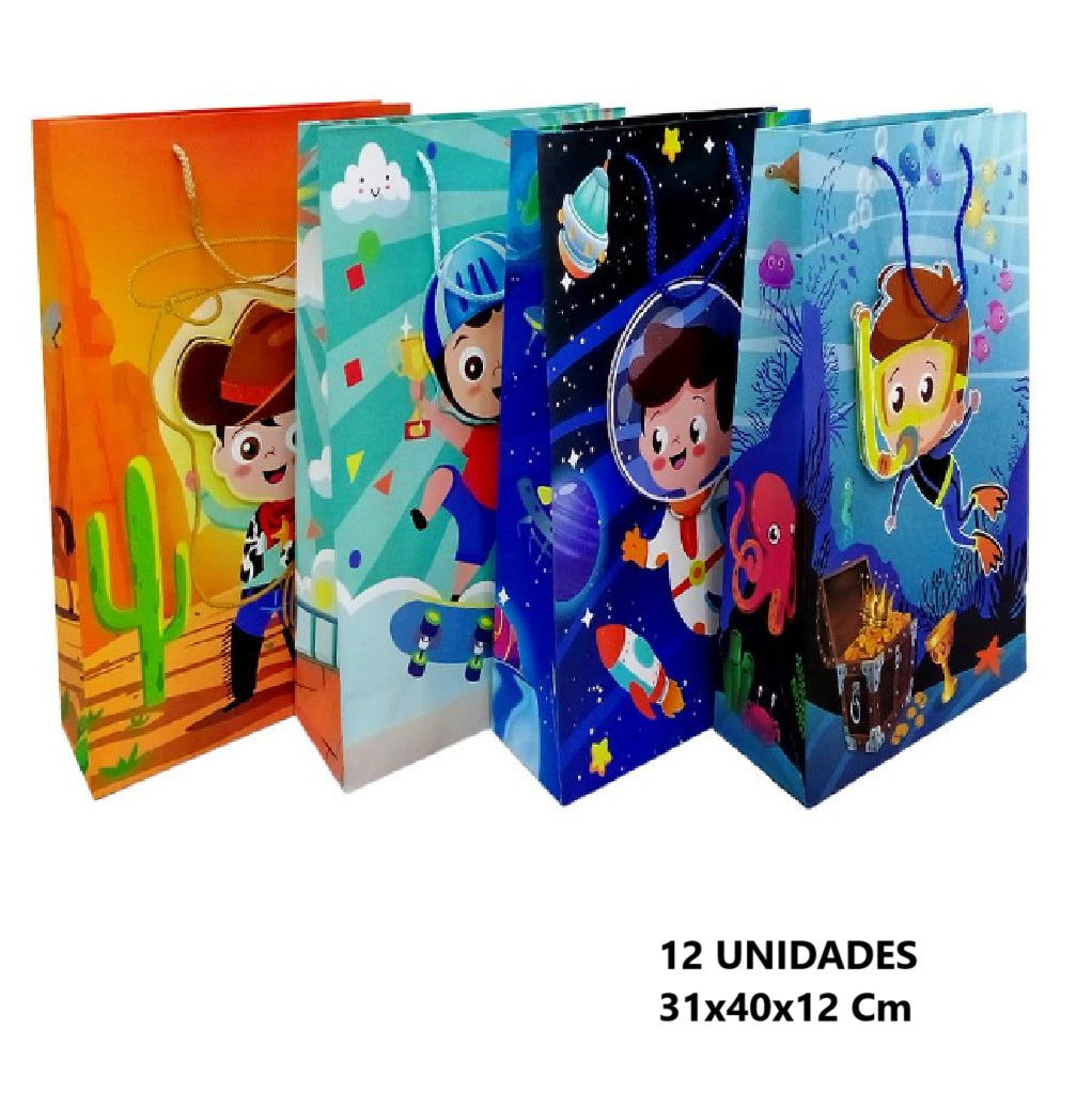 Bolsa De Regalo Grande Para Niños Aventurero 31x40x12 Cm x 12 Und