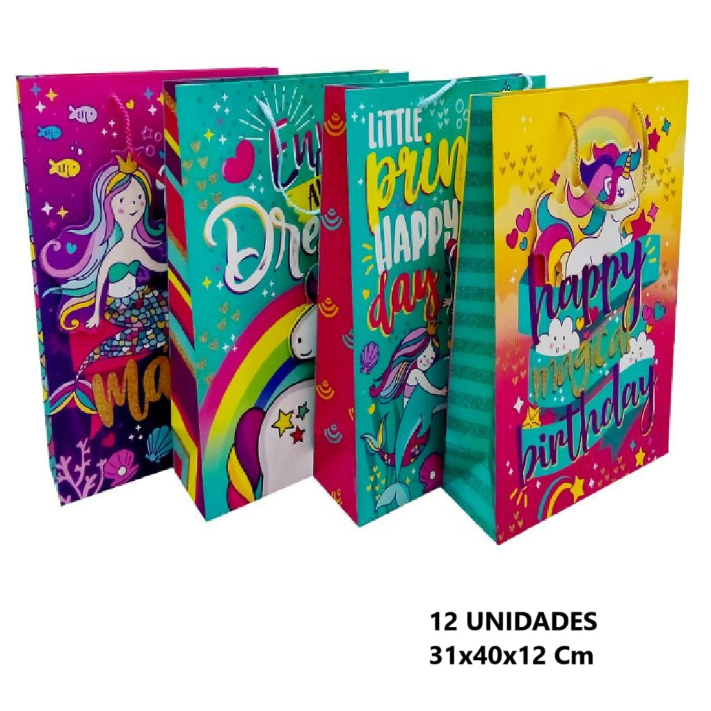 Bolsa De Regalo Grande Para Niños Unicornio & Sirena 31x40x12 Cm x 12 Und