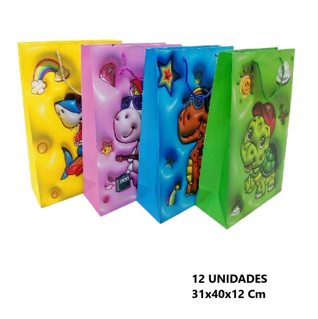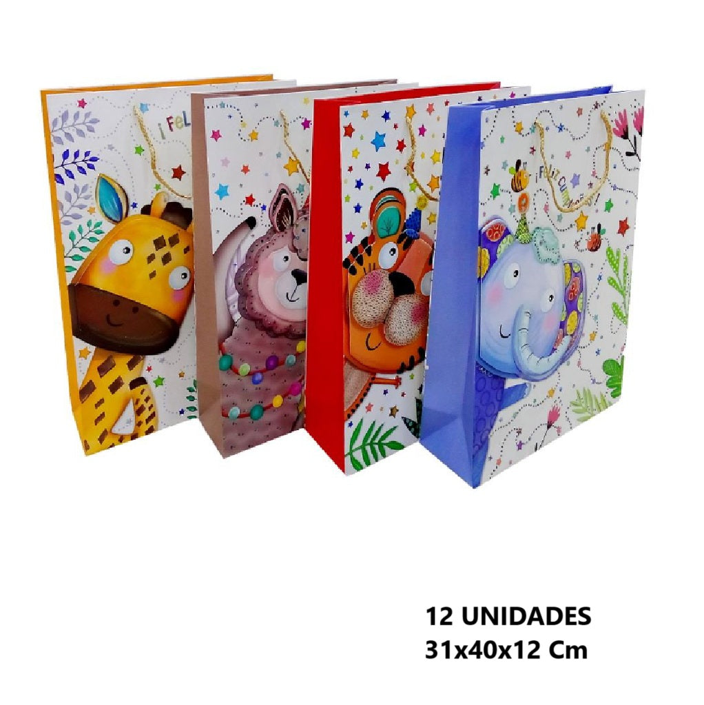Bolsa De Regalo Grande Para Niños Animales 31x40x12 Cm x 12 Und