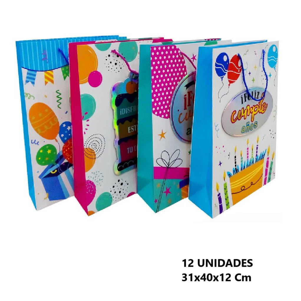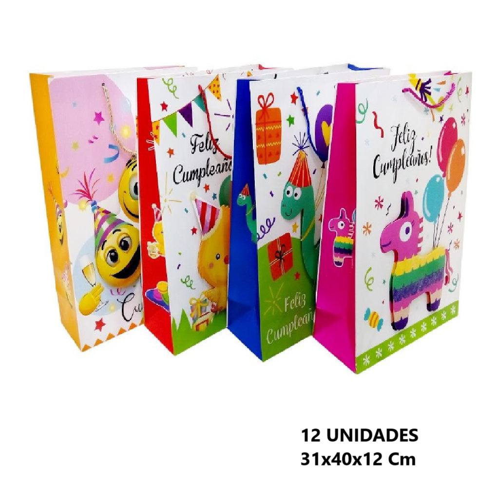 Bolsa De Regalo Grande Para Niños Tarta Cumpleaños 31x40x12 Cm x 12 Und