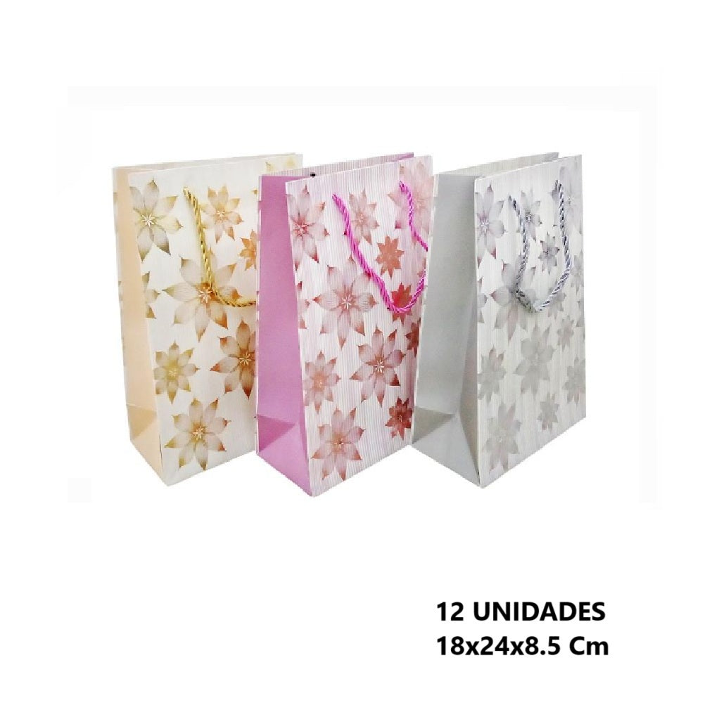 Bolsa De Regalo Chico Flores Grandes 18x24x8,5 Cm x 12 Und