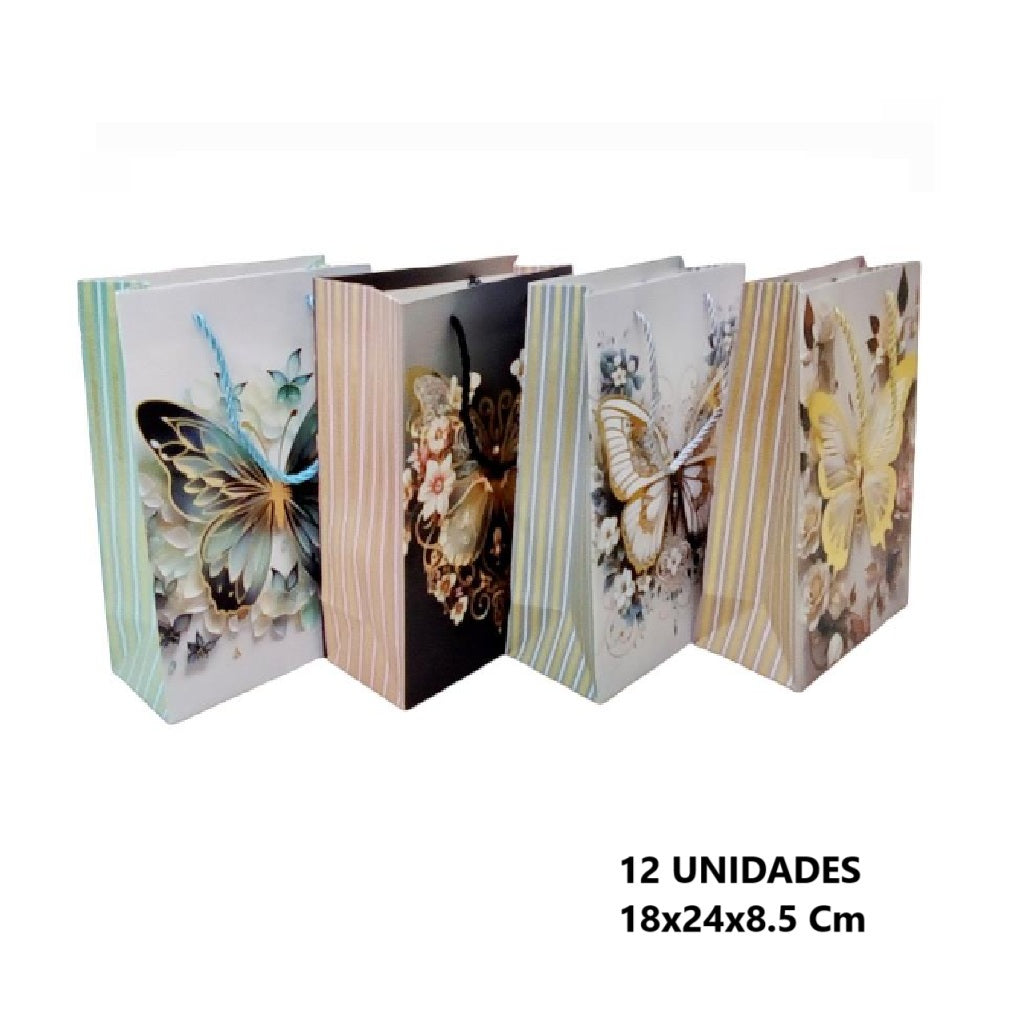 Bolsa De Regalo Chico Mariposas 18x24x8,5 Cm x 12 Und