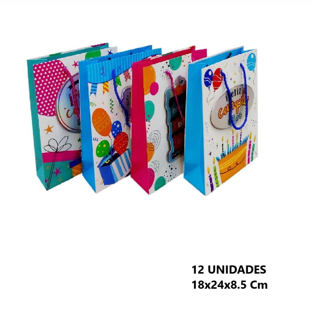 Bolsa De Regalo Chico Para Niños Tarta Cumpleaños 18x24x8,5 Cm x 12 Und