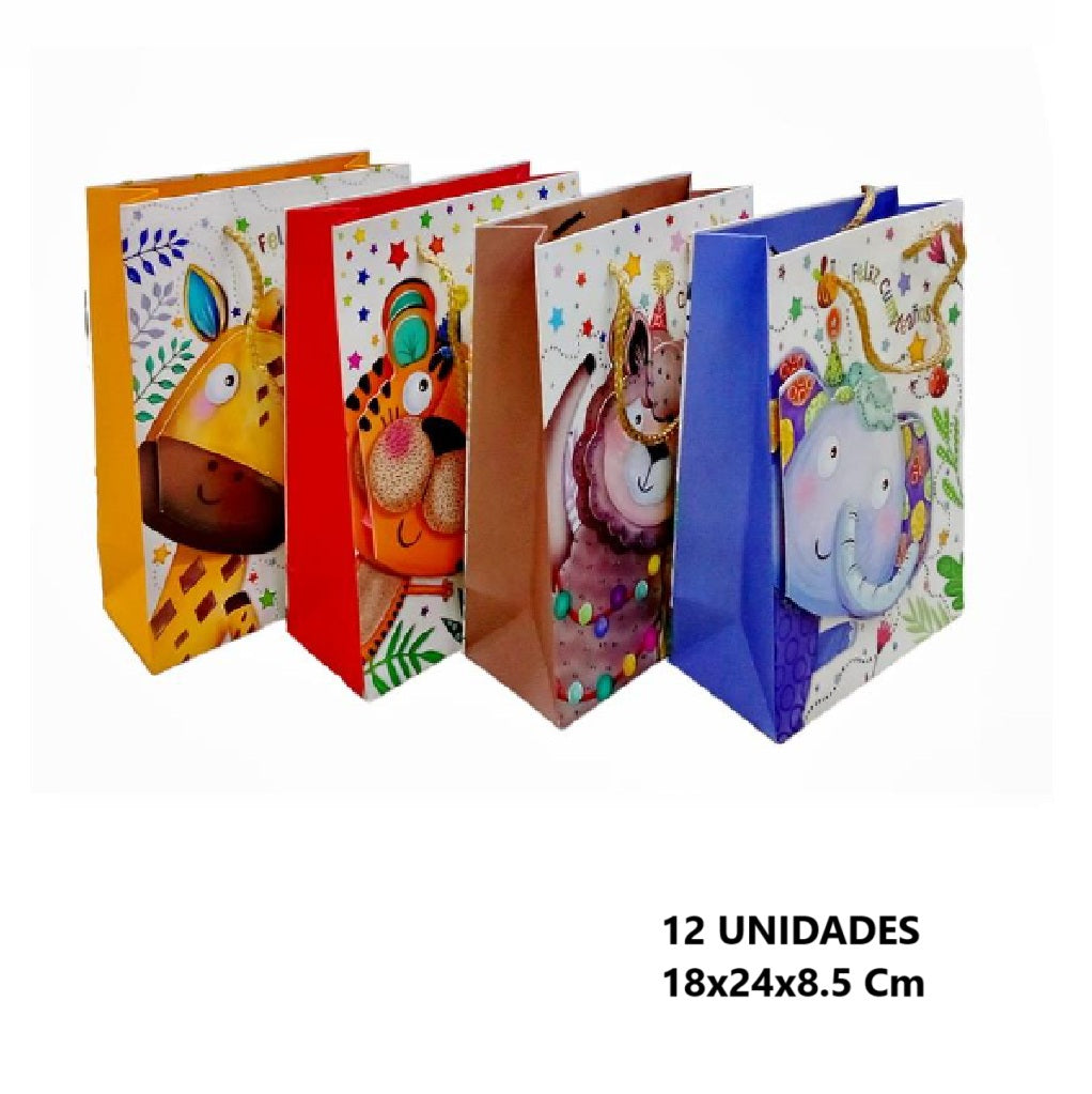 Bolsa De Regalo Chico Para Niños Zoo 18x24x8,5 Cm x 12 Und