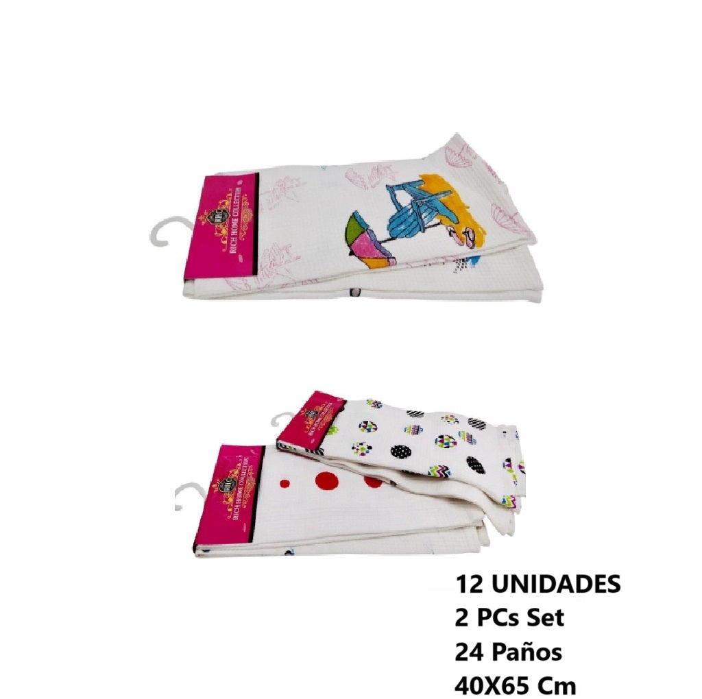 Paño De Cocina Dibujos 2 Pcs 40X65 Cm x 12 Und