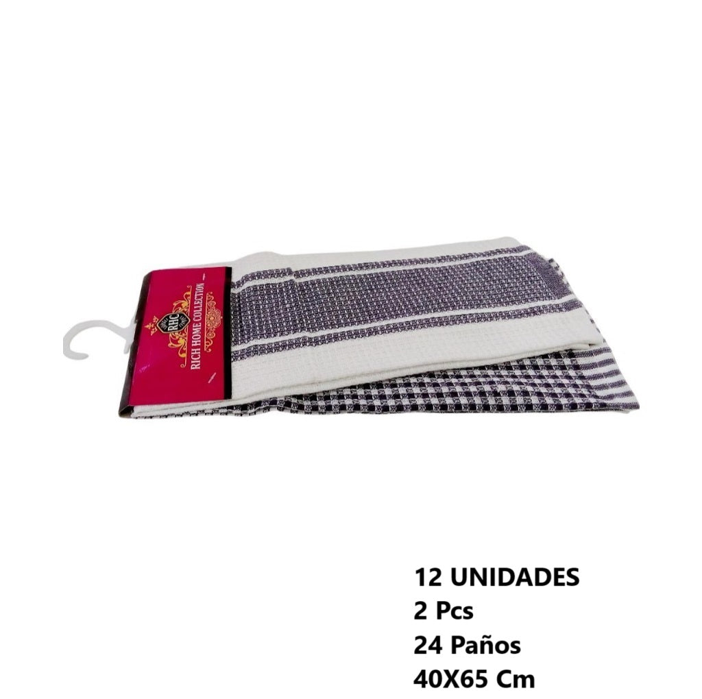 Paño De Cocina Lineas 2 Pcs 40X65 Cm x 12 Und