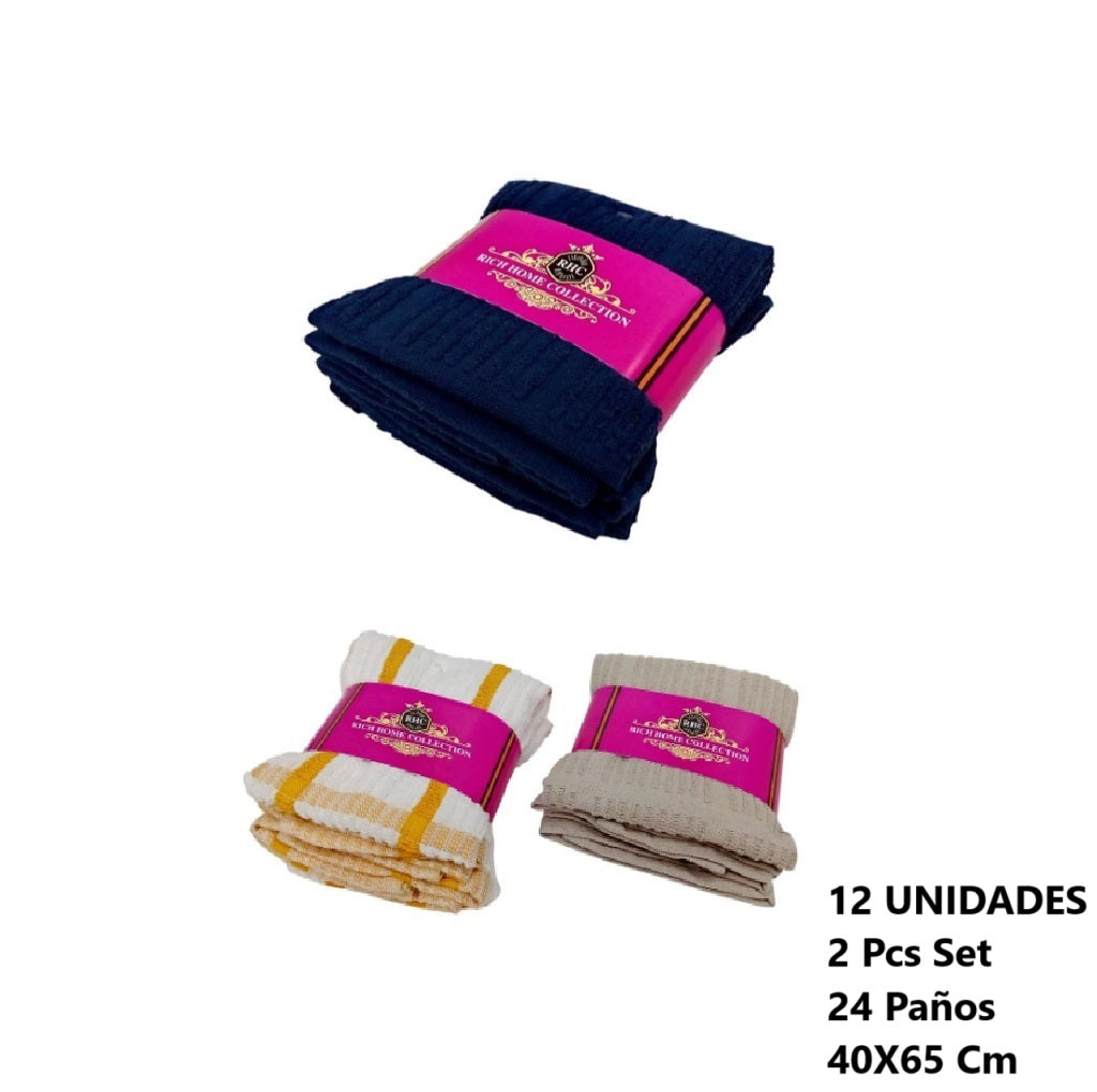 Paño De Cocina Solidos 2 Pcs 40X65 Cm x 12 Und