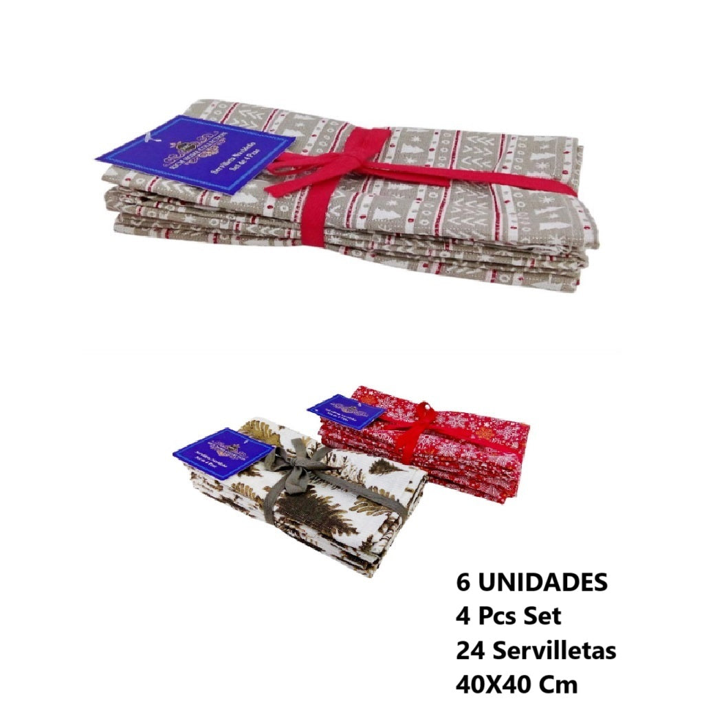 Servilleta De Genero Navideño 4 Pcs 40X40 Cm x 6 Und