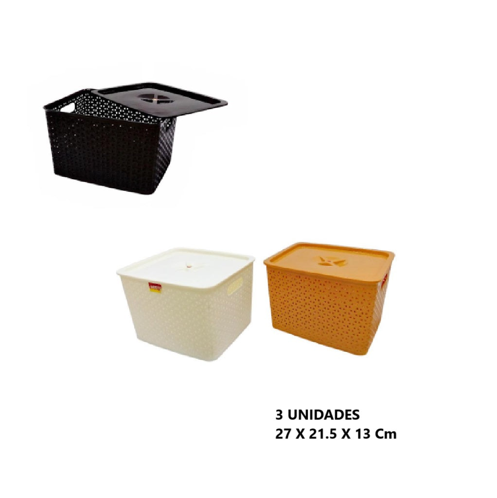 Canasto De Ropa Plastico 27 X 21.5 X 13 Cm x 3 Und
