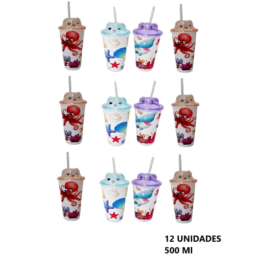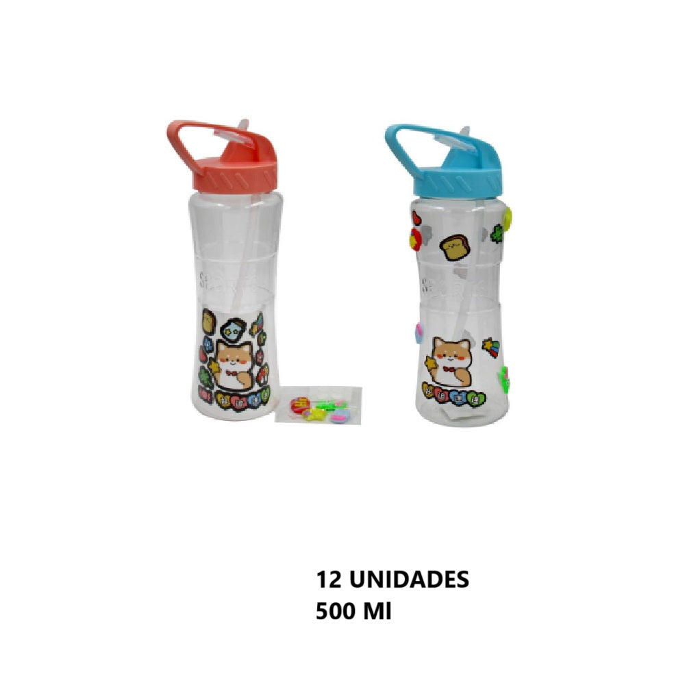 Botella Plastica Con Bombilla Mar 500 Ml 15x9 Cm x 12 Und