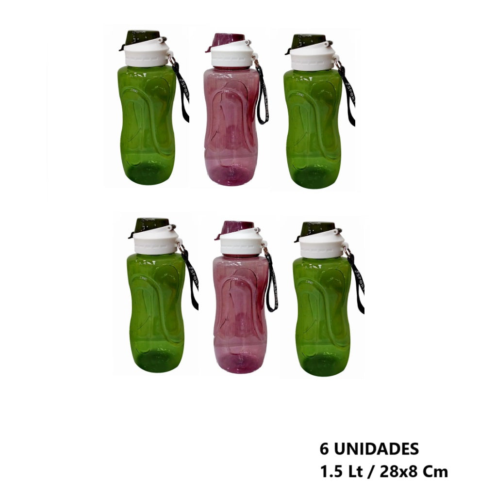 Botella Plastica Curva 1.5 Lt 28x8 Cm x 6 Und