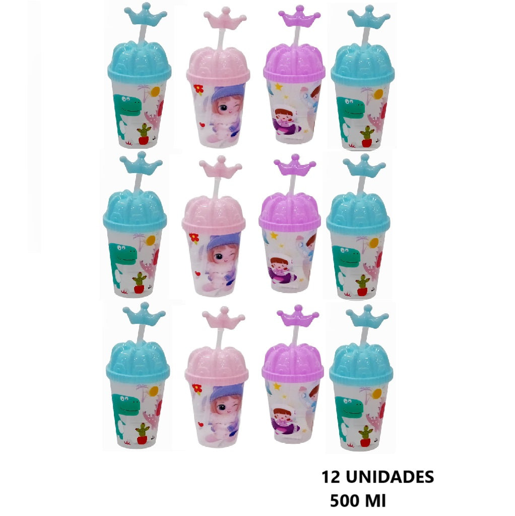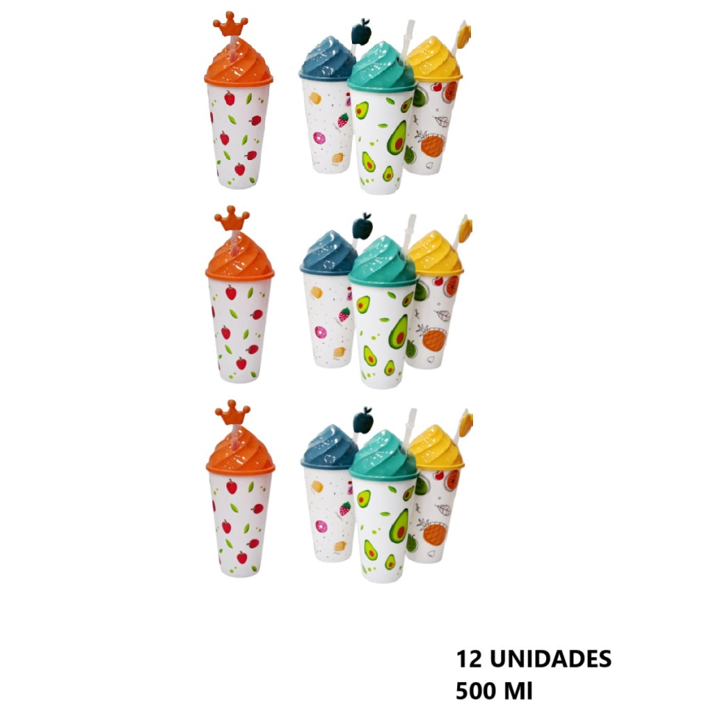 Botella Plastica Con Bombilla Helado 500 Ml 15x9 Cm x 12 Und