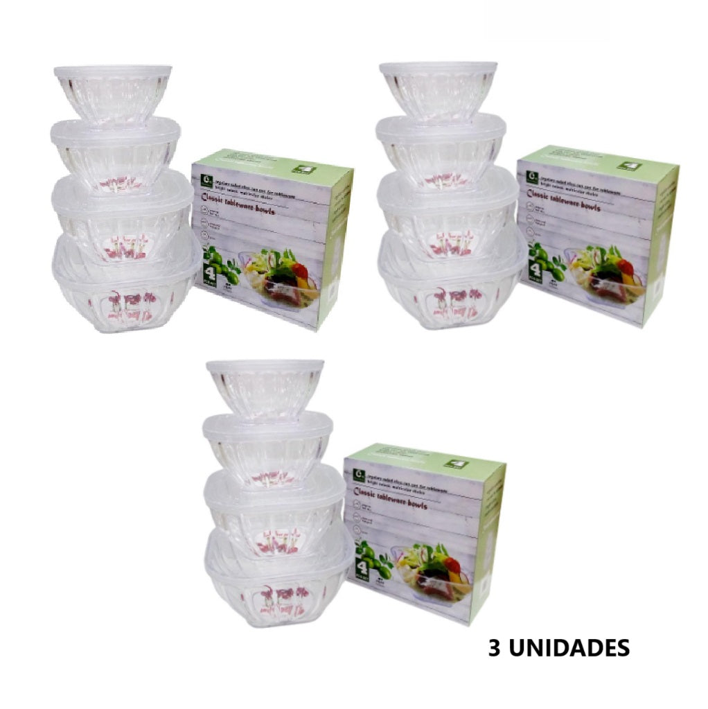 Bowl Acrilico Set 4 Pcs 16x8.5 Cm 18.5x9.5 Cm 21.5x11 Cm 24 x 3 Und