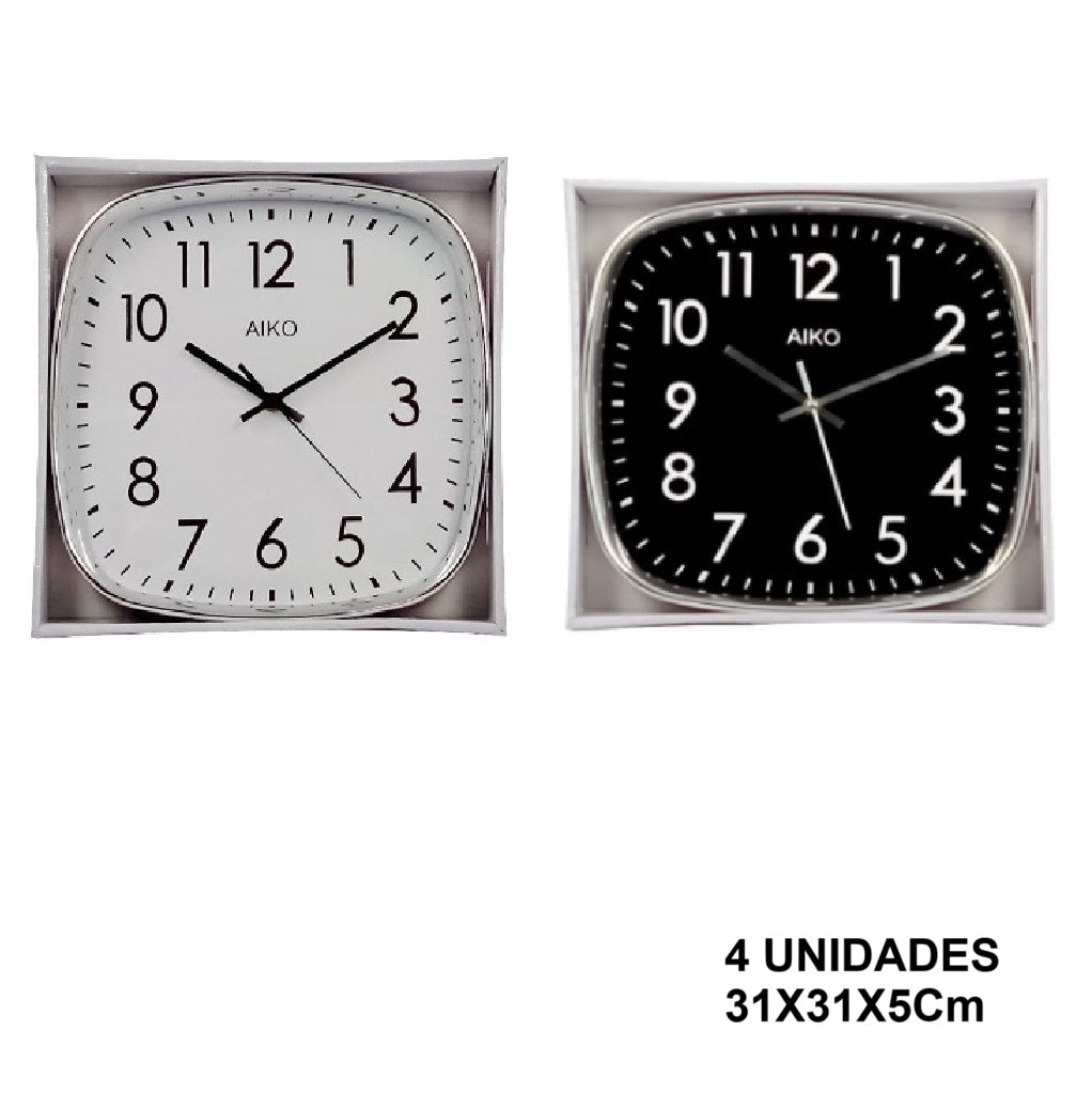 Reloj Cuadrado Clasico 31x31x5 Cm x 4 Und