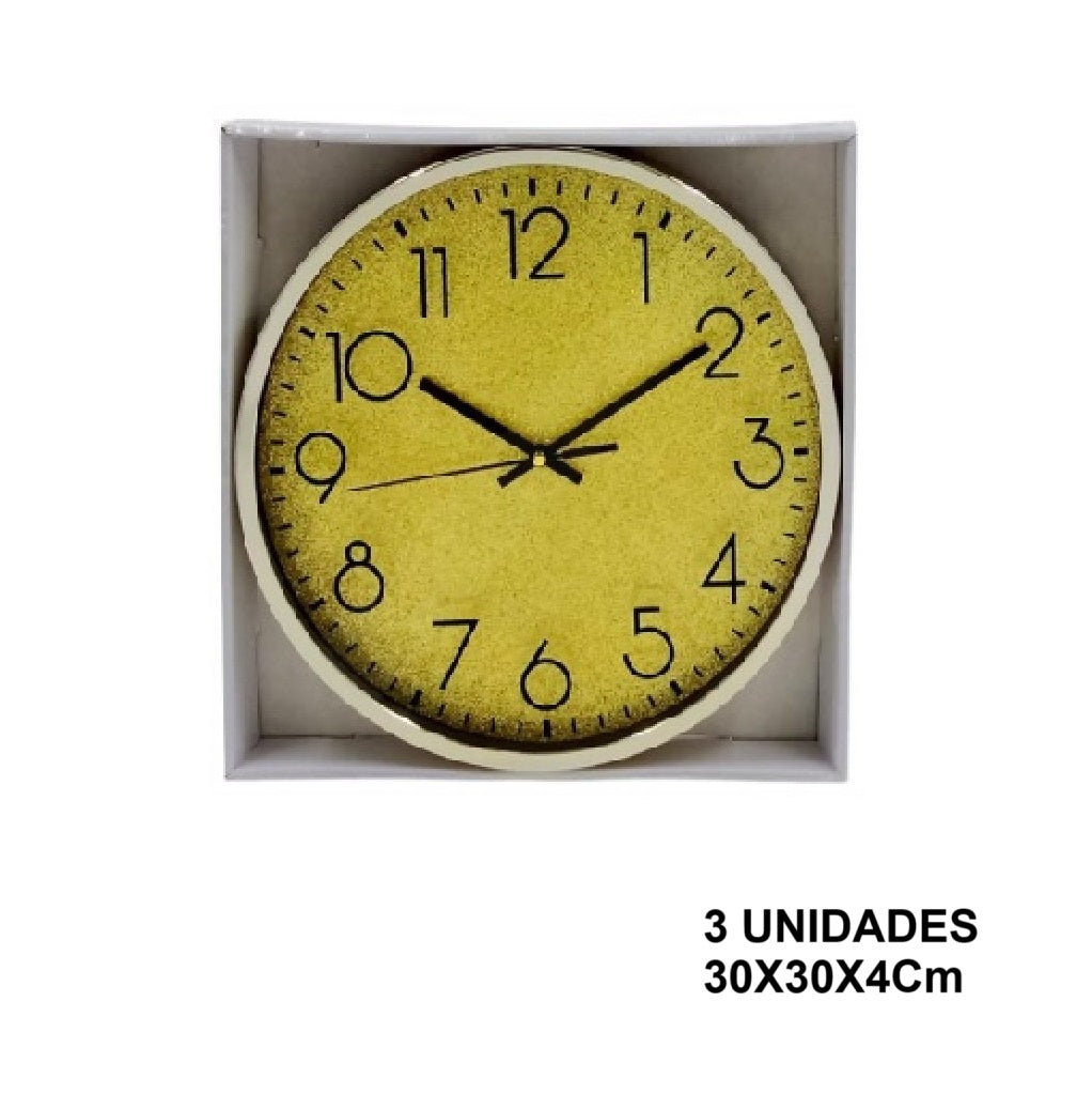 Reloj Clasico Amarillo 30.5X30.5X4 Cm x 3 Und