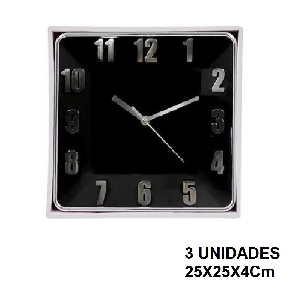 Reloj Cuadrado Negro Solido 25.4X25.4X4.3 Cm x 3 Und